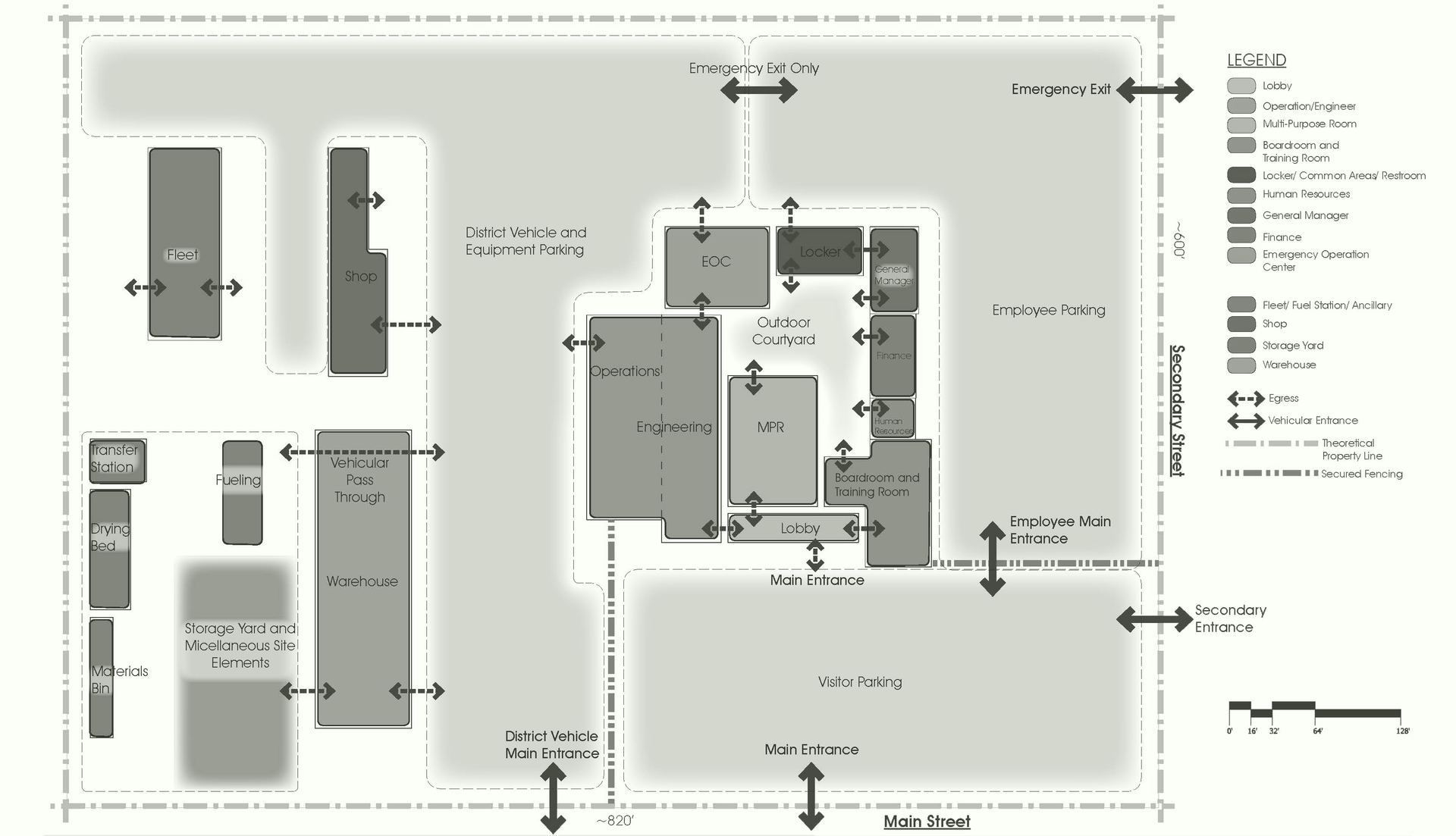 As a Consultant to Tetra Tech, GPa developed an advanced reclaimed water treatment campus that includes an approximately 45,000sf treatment plant process building and an approx. 24,150sf two story Administration and Visitors Building.