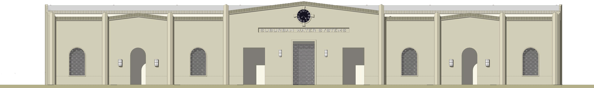 The Suburban Water Systems involved the design of the façade for a proposed reservoir along the busy Whittier Blvd that's adjacent to a historic building. The goal was to produce a cost-effective design scheme that would fit into the urban context as well as reference the historical building next door. The design took cues from the historic building as well as cost efficient measures like casting the architectural details into the concrete of the proposed reservoir. Elevations, floor plans, as well as a rendering and a cost analysis was presented to the client. The drawings were used to show the planning department and city council the proposed look and context of the future reservoir.